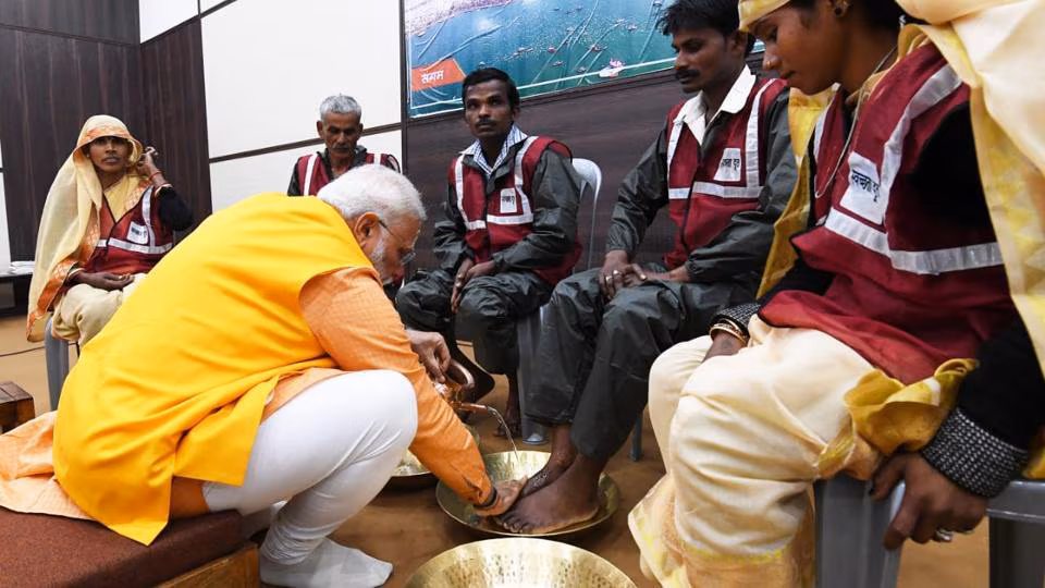 Modi washing feet vs Mohan Bhagwat getting his feet washed